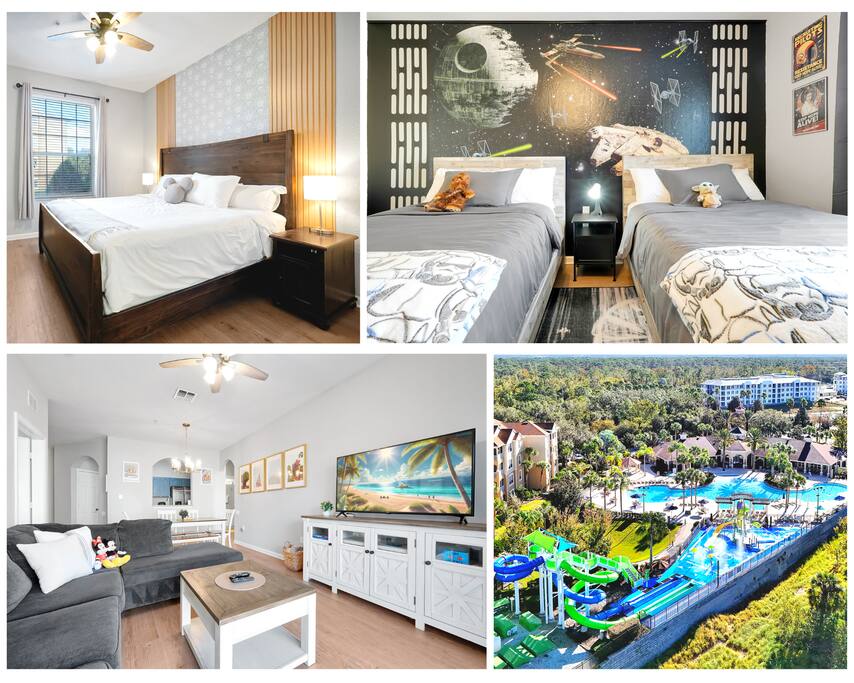 A Disney and Star Wars-inspired family escape just minutes from Disney World, with free waterpark access.